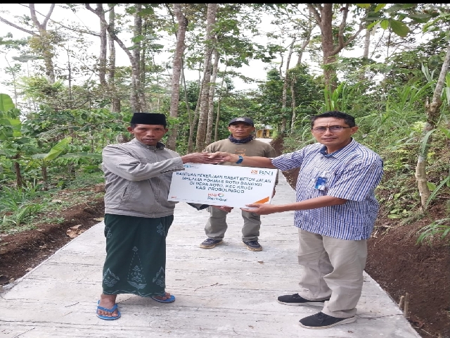 Dua titik di Kabupaten Bekasi, yakni Tambun Selatan dan Pebayuran, mendapatkan bantuan dana untuk pengecoran dan perbaikan jalan desa. Sedangkan di Kabupaten Probolinggo, BNI memberikan bantuan pavingisasi dan rabat beton di tiga kecamatan.